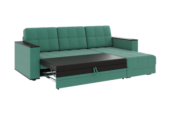 Диван-кровать угловой Атлант велюр зеленый со спальным местом (сборка на любую сторону)