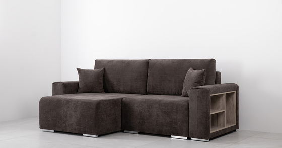 Диван-кровать угловой Оксфорд 711 композиция 6, Muza 06 темно-коричневый, модульная система, сборка на любую сторону