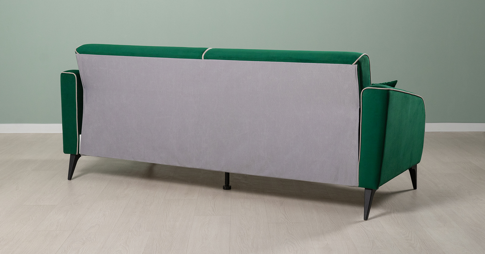 Диван-кровать прямой Ноэль ТД 446 велюр темно-зеленый малахитовый, светлый кварцевый серый