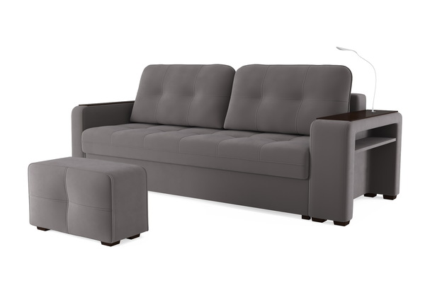 Диван «SMART 4» — это не просто мягкая мебель, а один из ключевых элементов интерьера с обширным функционалом, где эстетика тесно соседствует с комфортом и эргономичностью.  Одна боковина оснащена карманом для хранения мелочей и гаджетов, другая боковина совмещает одновременно: рабочую поверхность, за счет широкой накладки, двойной  usb - порт  и портативную лампу точечного света, которая входит в комплект. Добавить контрастных деталей в интерьер поможет пуф, интегрированный в подлокотник. Этот вариант для современных людей, которые ценят комфорт и удобство отдыха. Мягкое сиденье с легкостью трансформируется в просторное спальное место, на котором смогут утроиться ваши гости. Стильный и уютный, он станет отличным решением, если вы ищите не только красоту, но и комфорт.