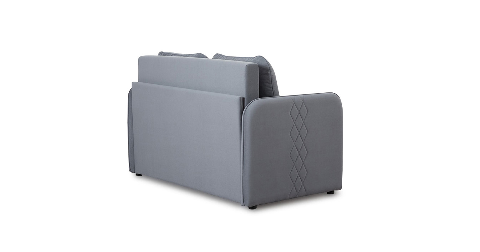 Стильный компактный диван для детской и гостиной. При своих скромных размерах он трансформируется в полноценное спальное место для детей и подростков. Лаконичный дизайн в виде декоративной стежки подчеркивает фактуру велюра, а небольшие размеры позволят разместить его в любом пространстве.