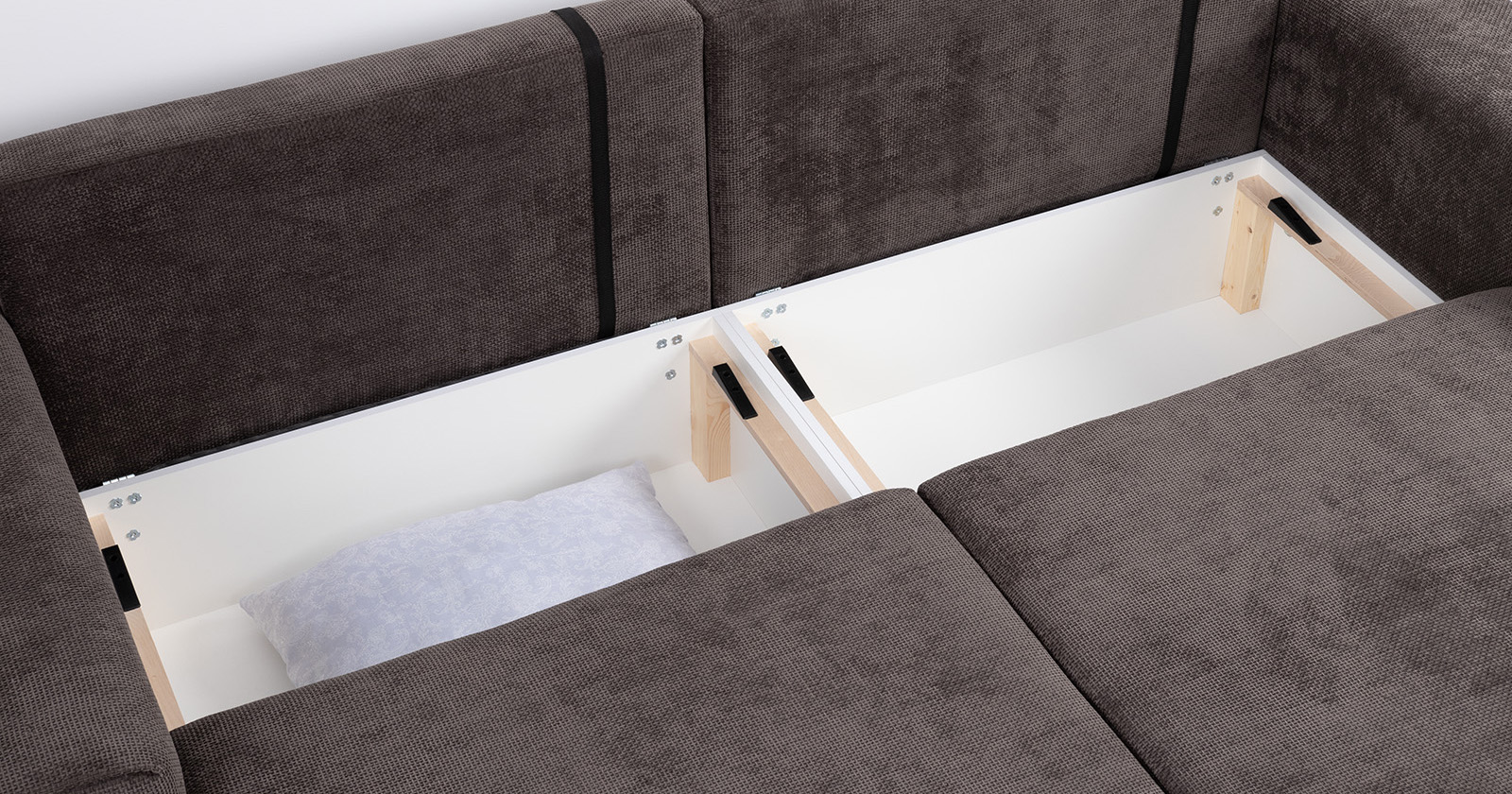 «Компоновка 2» состоит из: оттоманки арт. ТО, двух диванов арт. ТД, широкого подлокотника арт. ТБ, широкого подлокотника с ящиком арт. ТБ, трех приспинных подушек и двух декоративных подушек.