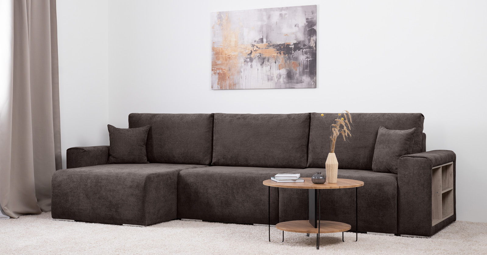Диван-кровать угловой Оксфорд 711 композиция 2, Muza 06 темно-коричневый, модульная система, сборка на любую сторону