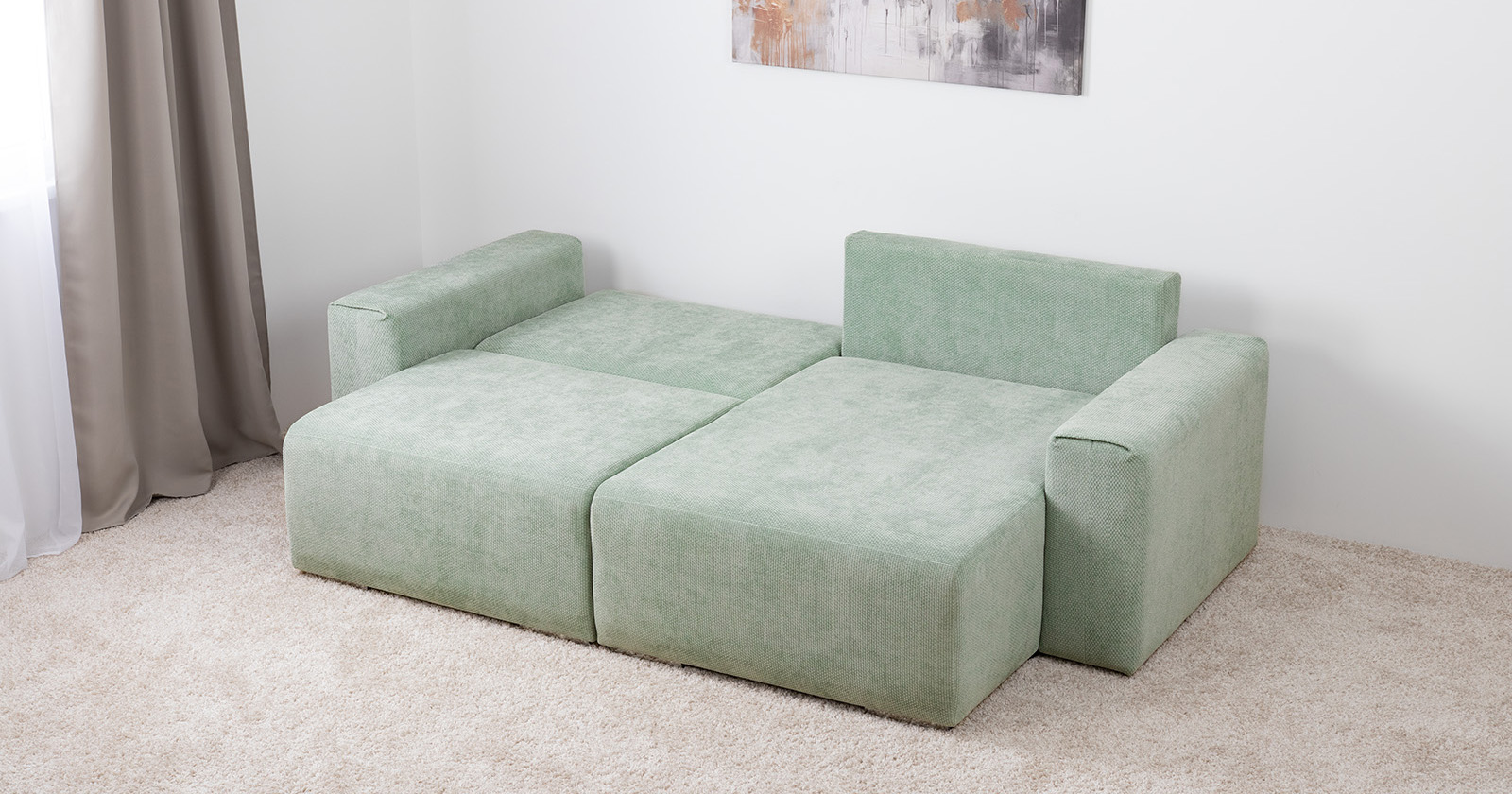 Диван-кровать угловой Оксфорд 715 композиция 1, шенилл STORM 9 мятный, модульная система, сборка на любую сторону