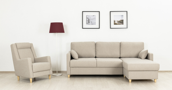 Диван-кровать угловой SMART 1 левый, велюр Velutto 05 бежевый (1Пф-2Т)
