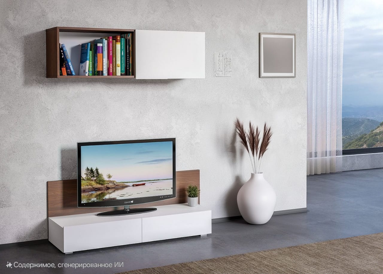 Тумба под ТВ в гостиную Гринвич 08.115 орех селект каминный, белый премиум