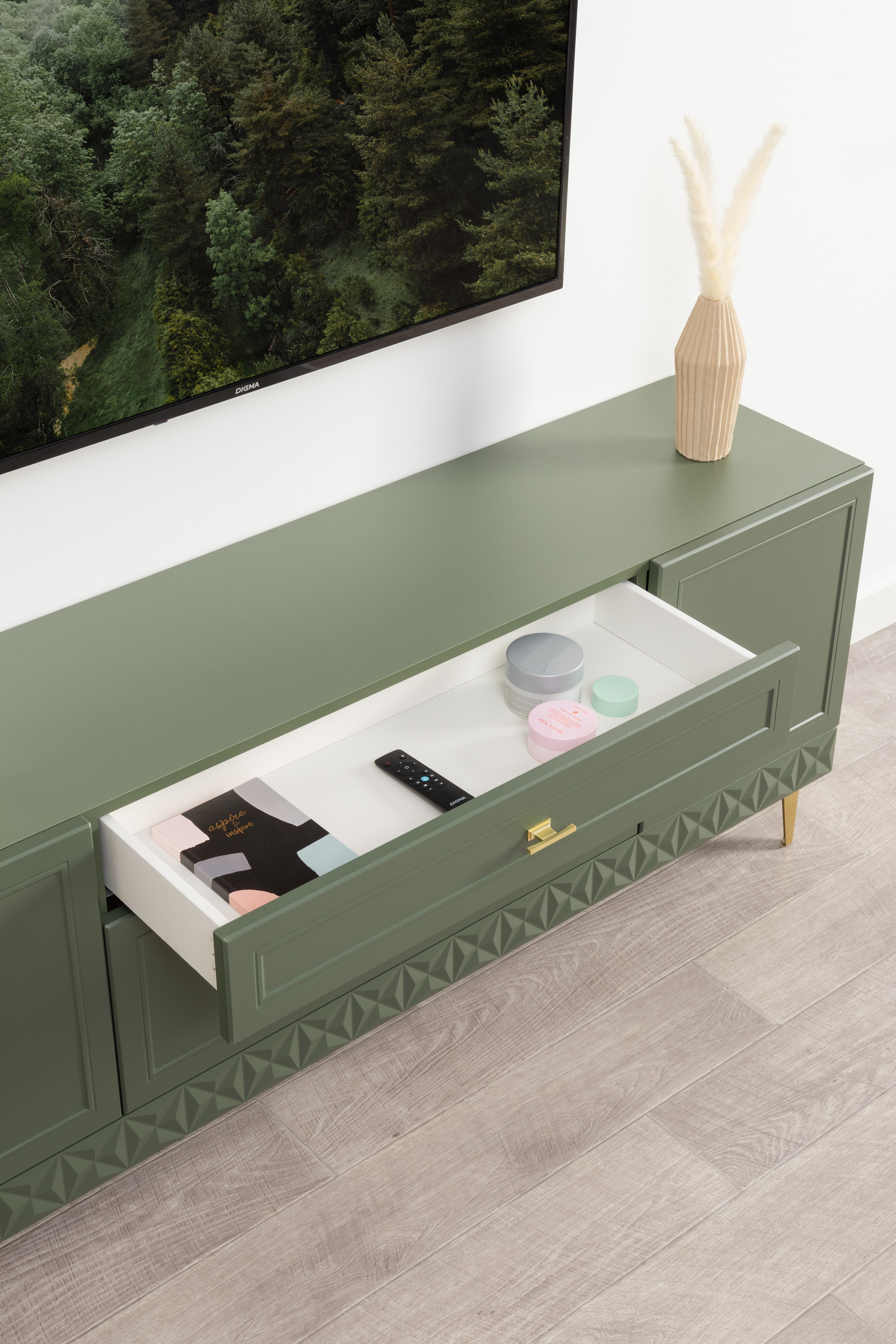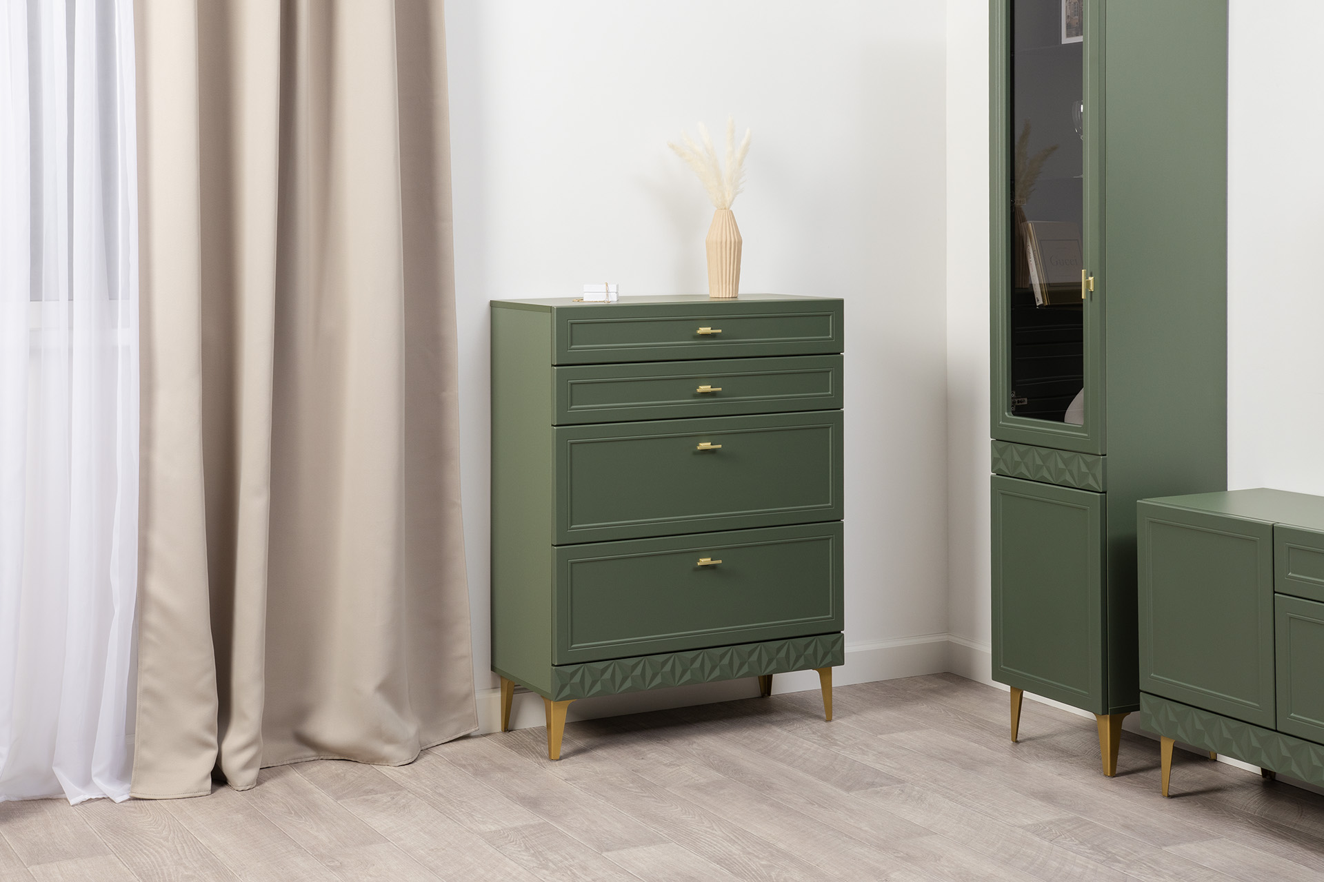 Тумба Марион 16.167 дымчатый зеленый K521, олива шагрень AG 1050 ПВХ, белый PE шагрень