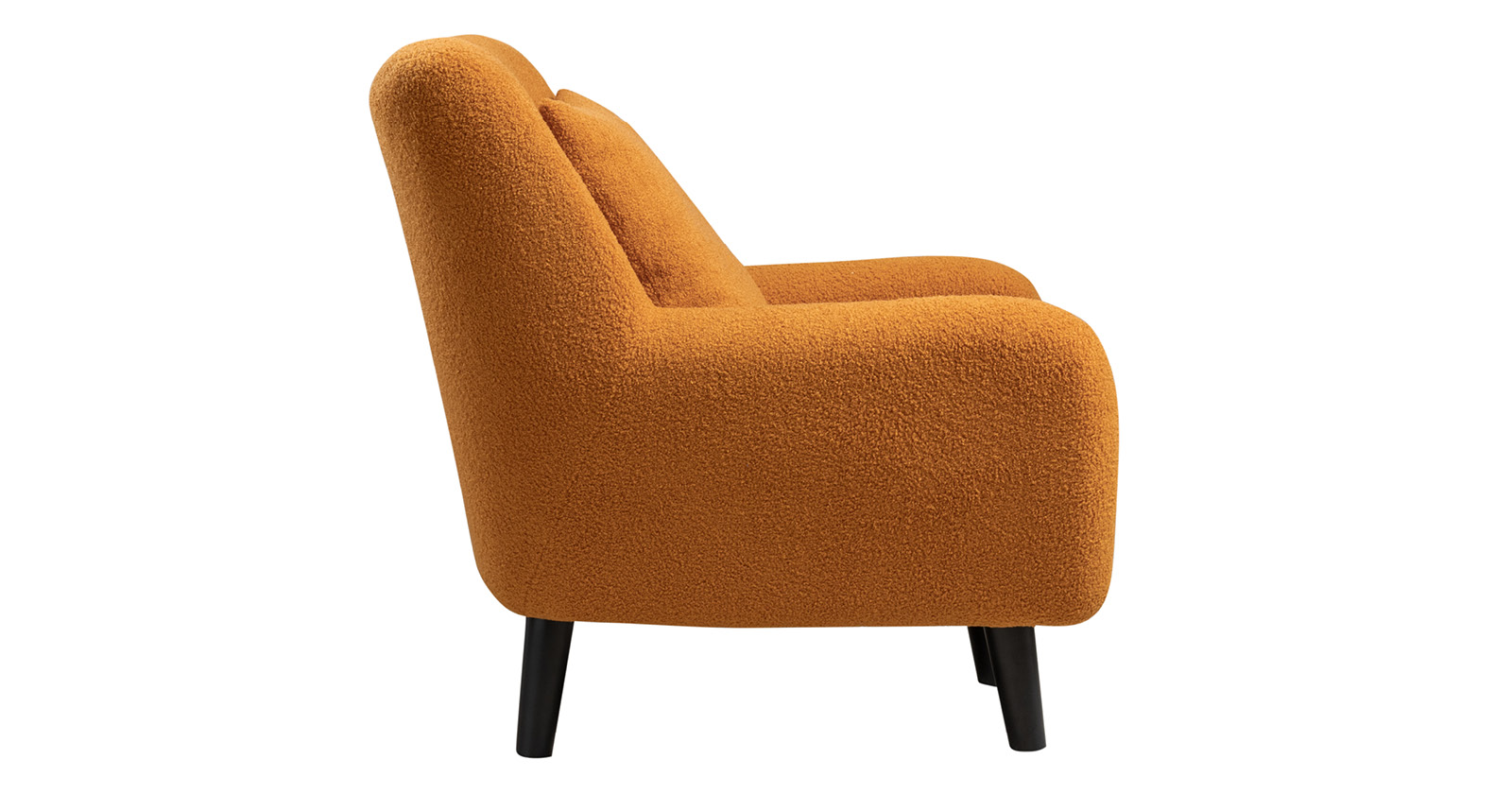 Ткань букле делает кресло особенно уютным и мягким. Приспинная подушка в цвете кресла