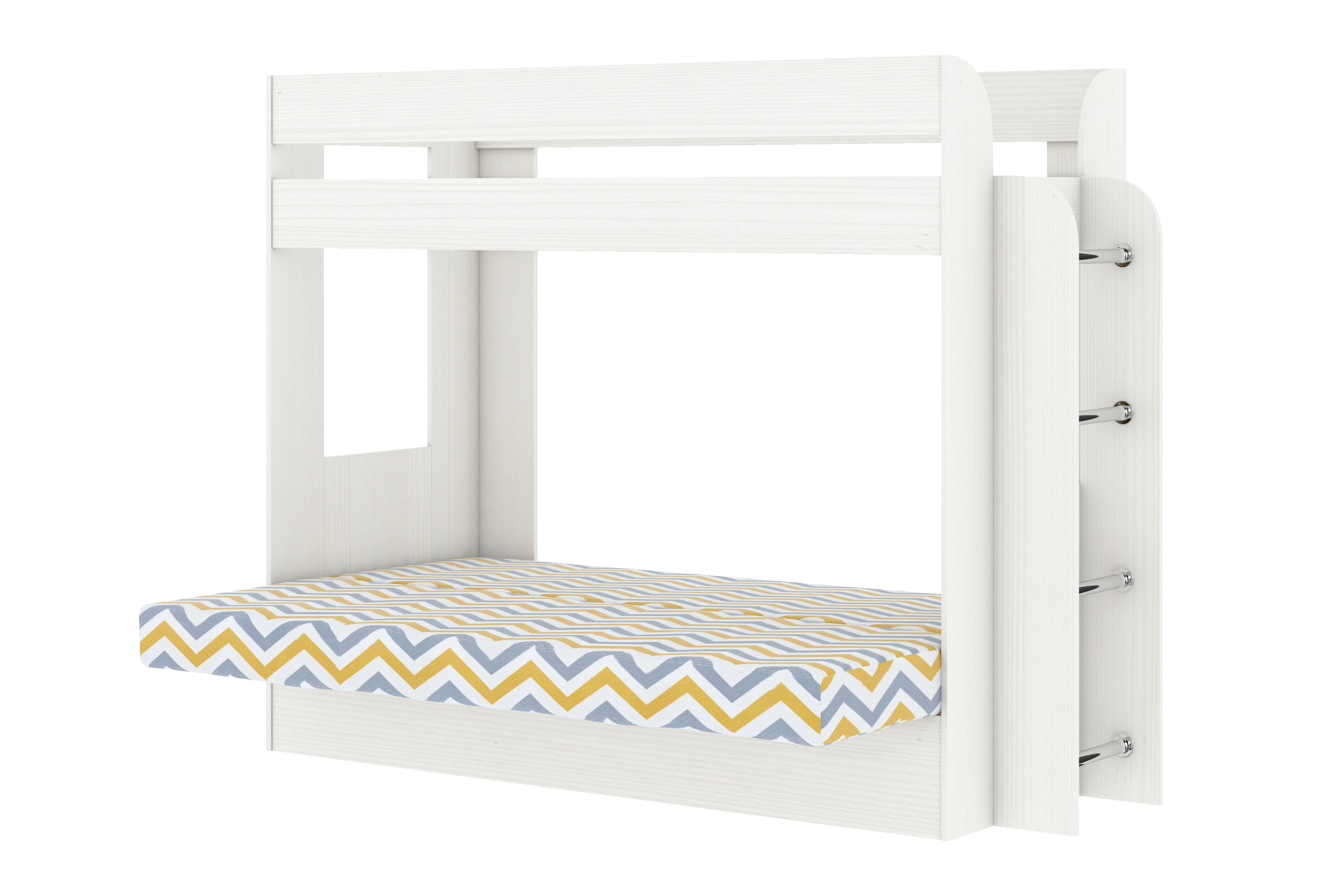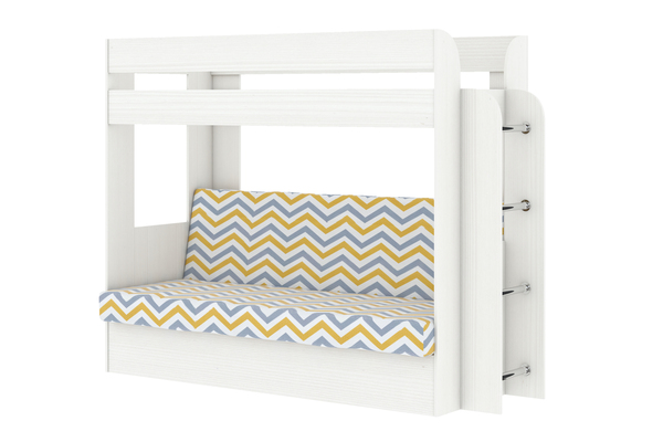 Кровать детская двухъярусная Карамель 75 бодега светлая (RIKKO YELLOW) желтые зигзаги (сборка на любую сторону) спальное место верх 80х190, низ 120х185