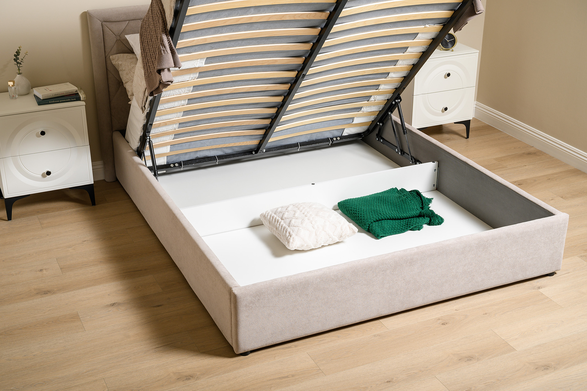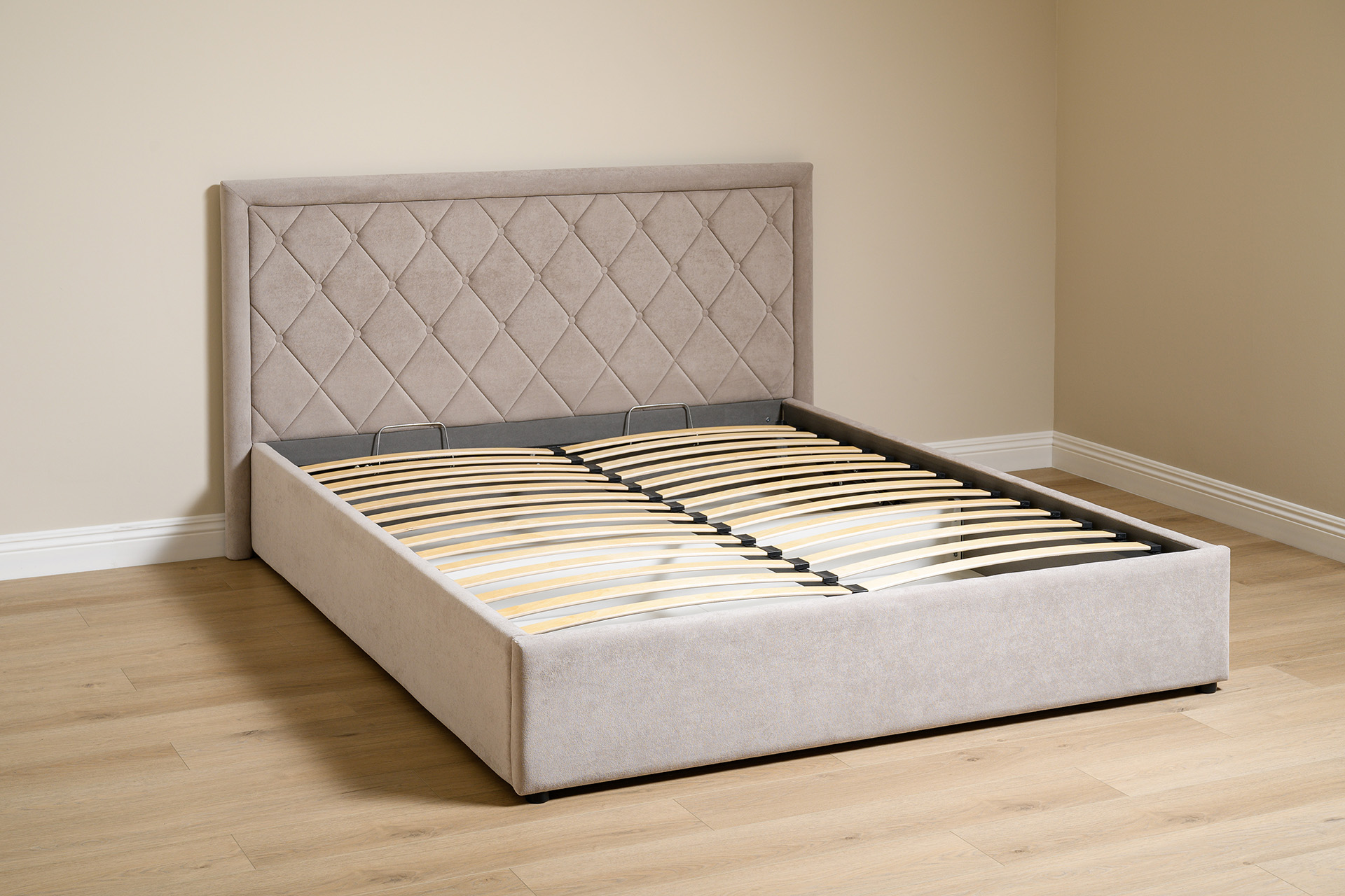 Кровать Марион 160 велюр OCEAN 005 темно-бежевый с ортопедическим основанием и подъемным механизмом (спальное место 160 х 200)