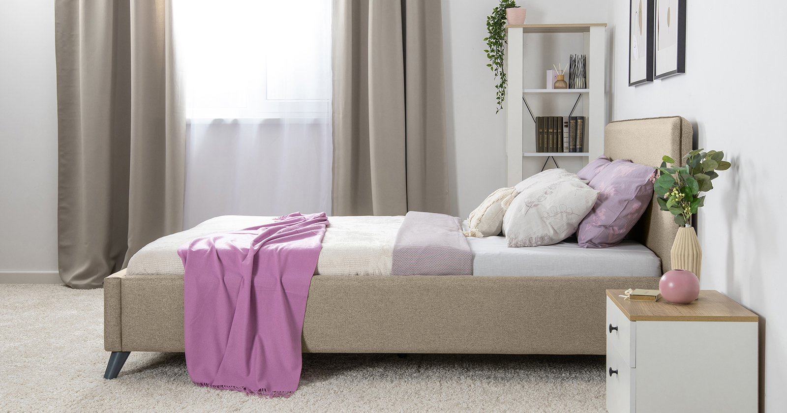 Лаконичный дизайн, гладкая и приятная на ощупь рогожка, широкий выбор пастельных оттенков, высокие опоры — модная кровать МИА порадует сторонников скандинавского стиля.