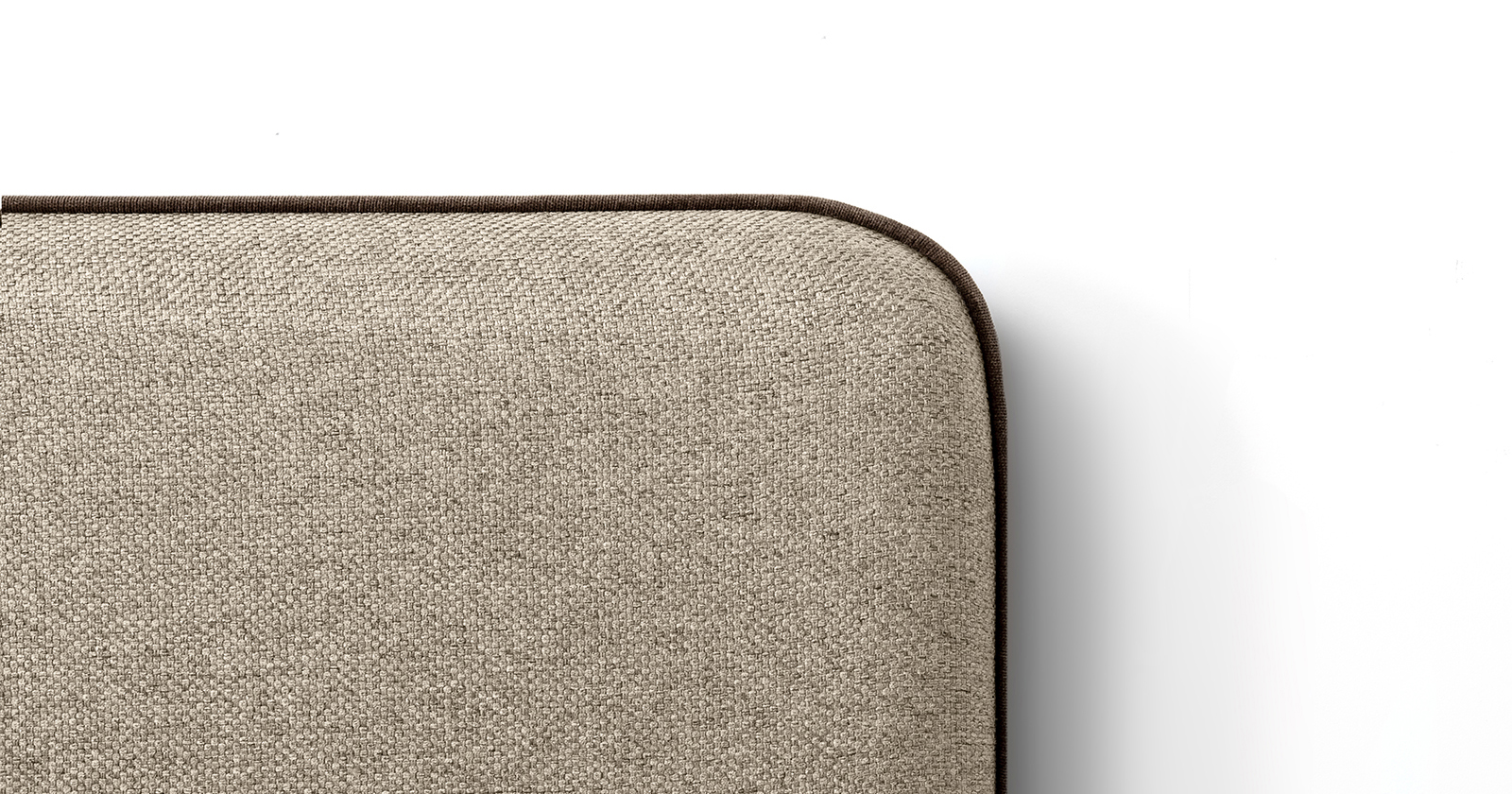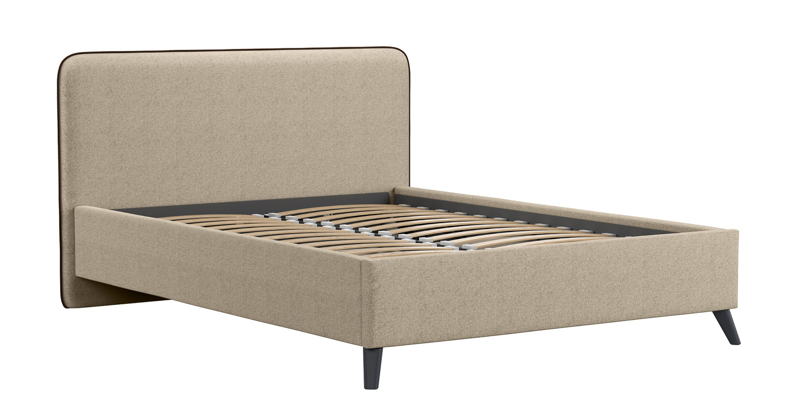 Cкругленный торец изголовья оформлен контрастным кантом.