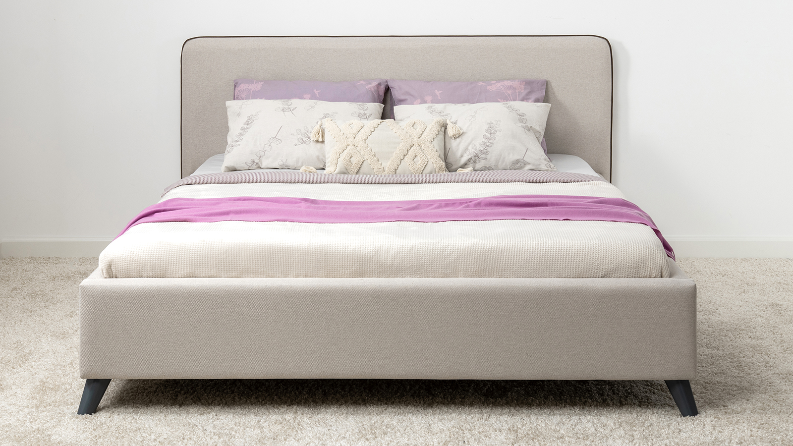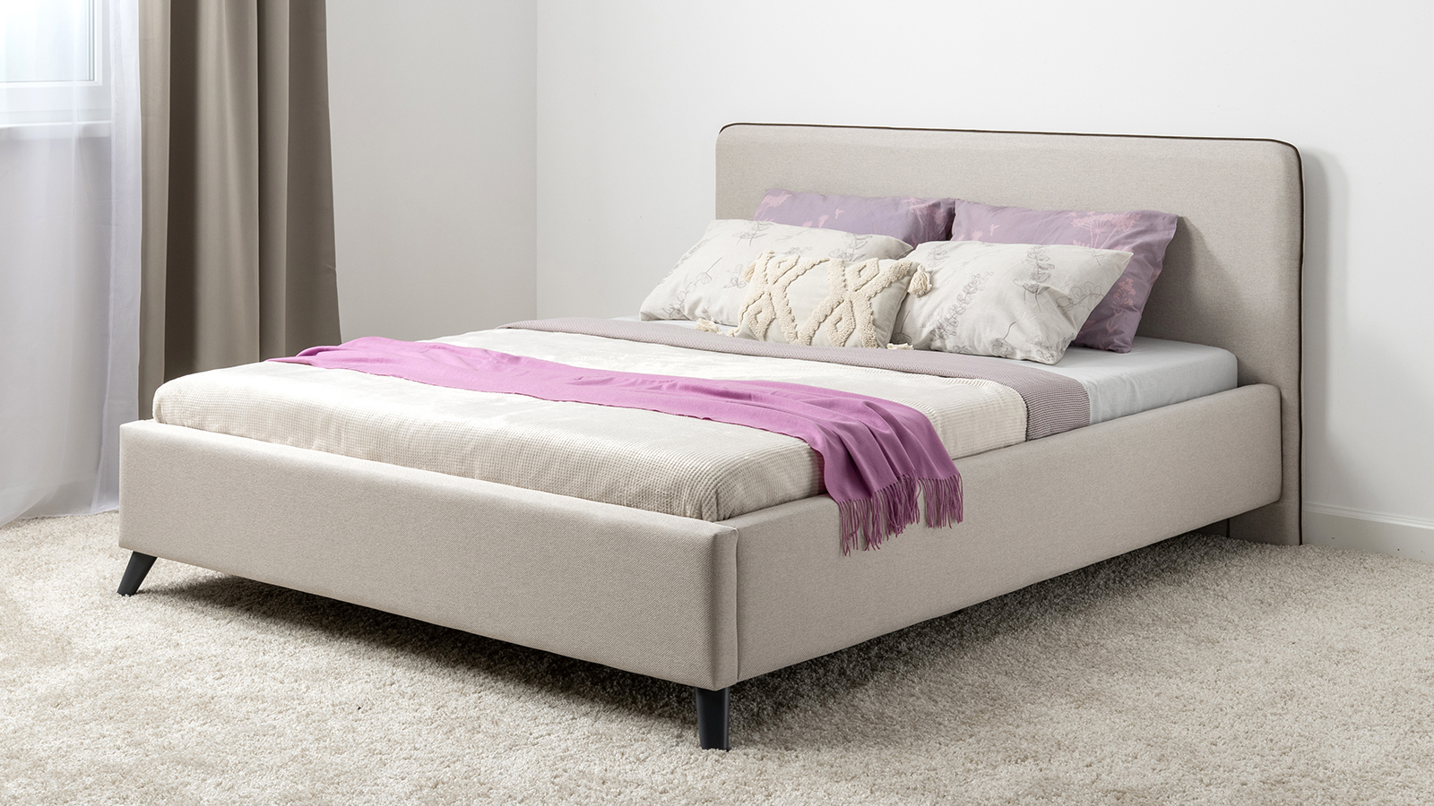 Лаконичный дизайн, гладкая и приятная на ощупь рогожка, широкий выбор пастельных оттенков, высокие опоры — модная кровать МИА порадует сторонников скандинавского стиля.