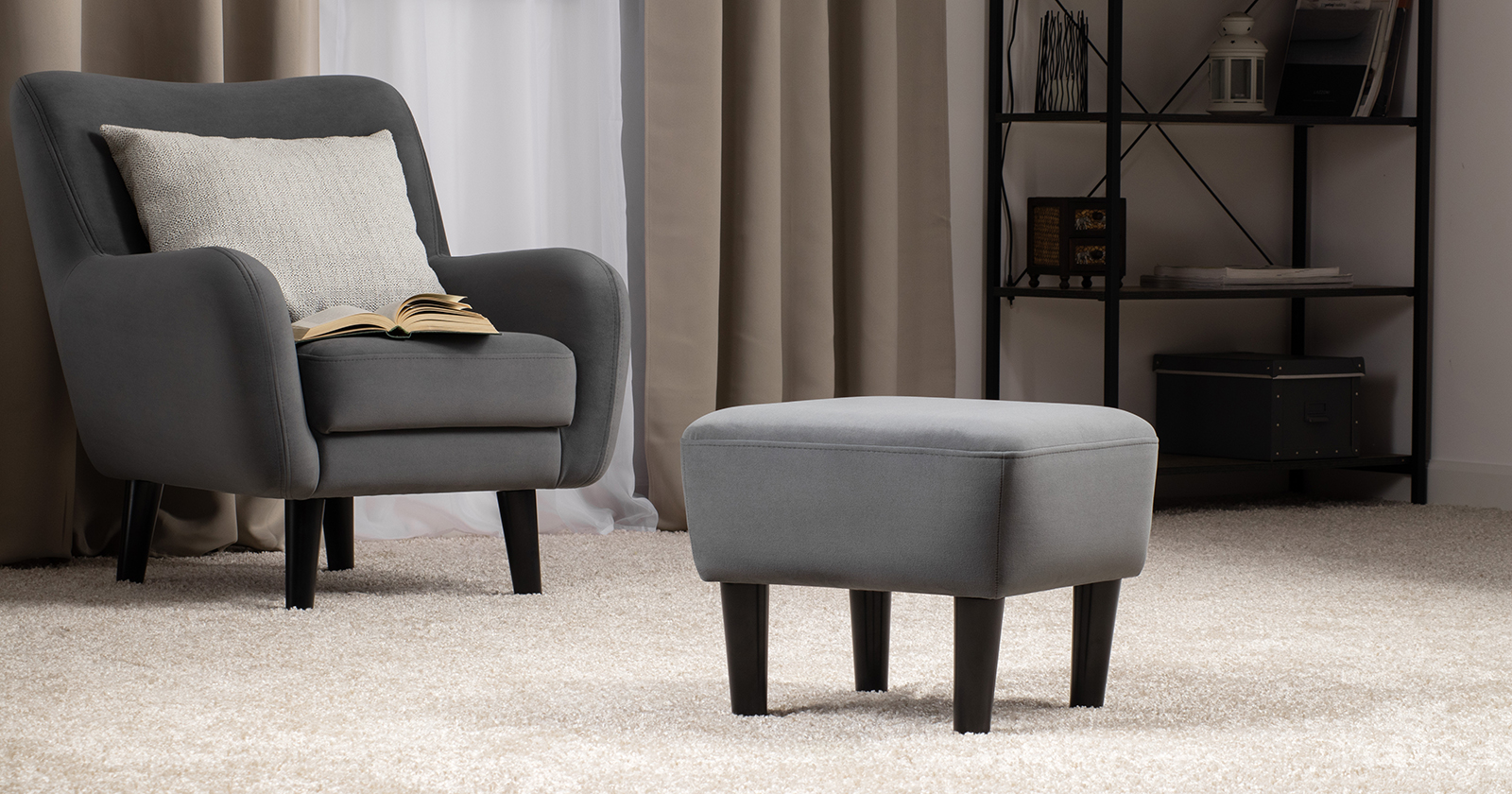 Мягкие линии и визуальная легкость — отличительные черты пуфа Дакота. Гармонично дополнит диван и кресло из этой коллекции.