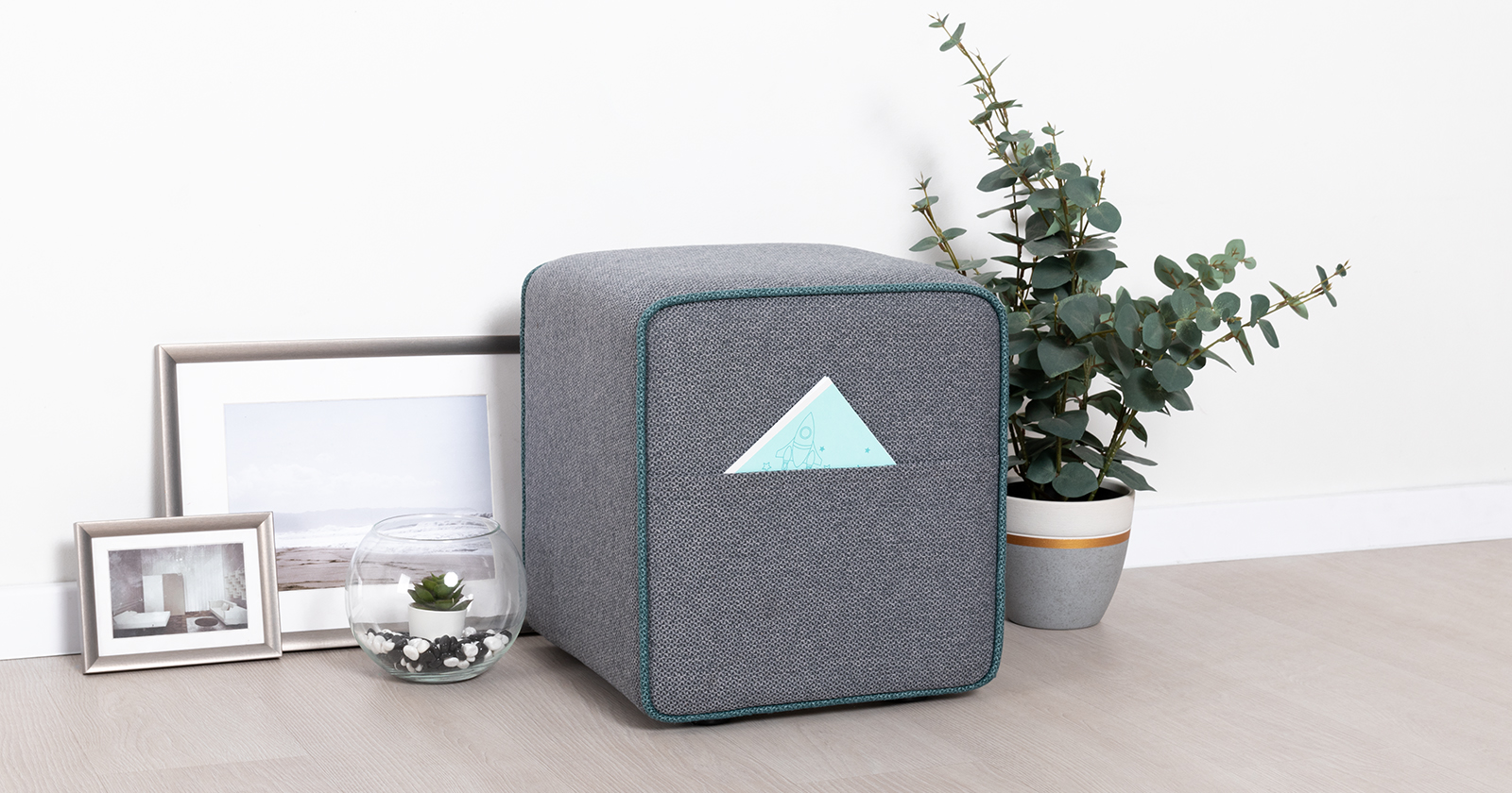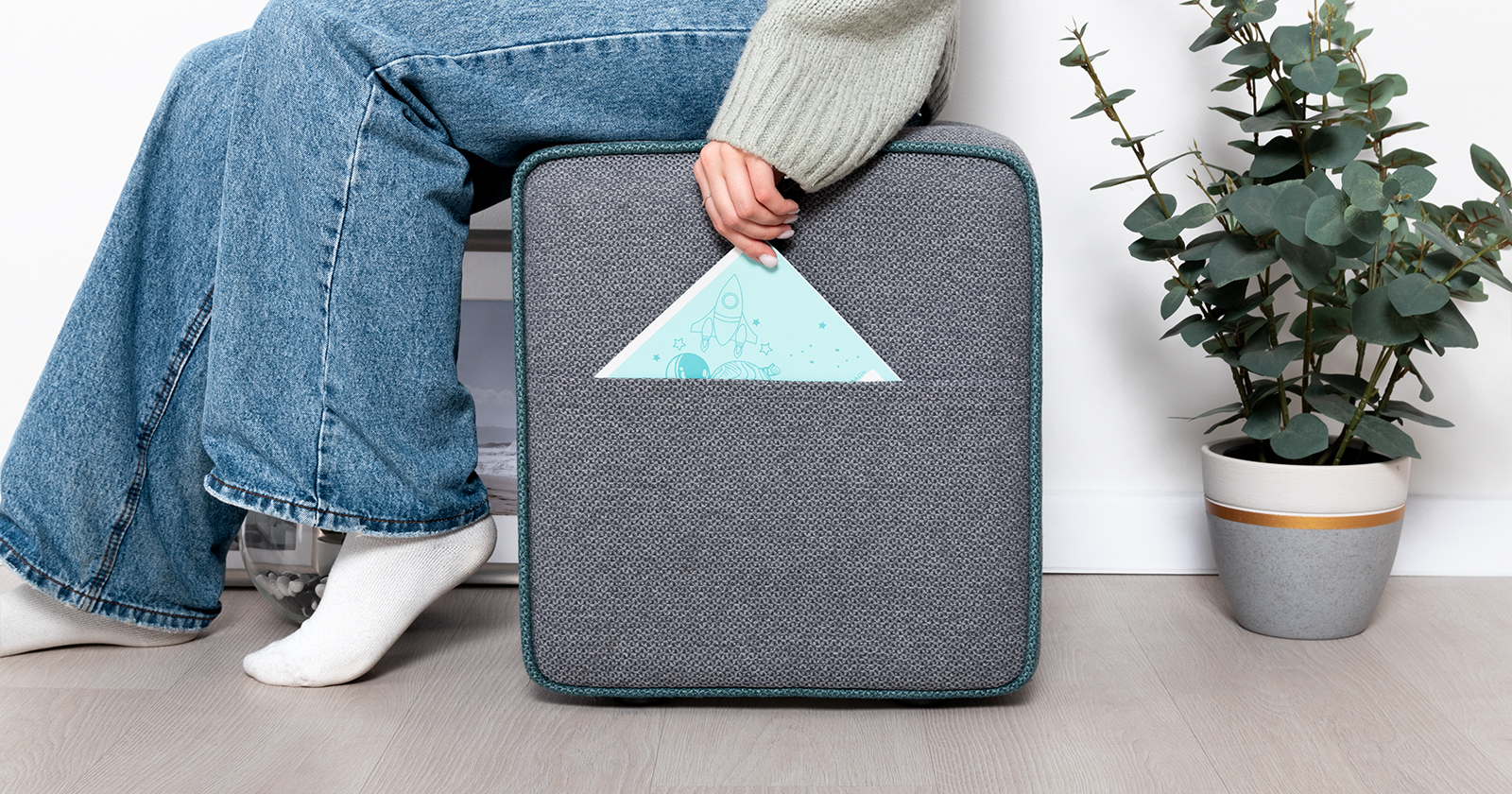 Боковые карманы на противоположных сторонах пуфа, два противоположных торца оформлены контрастным кантом