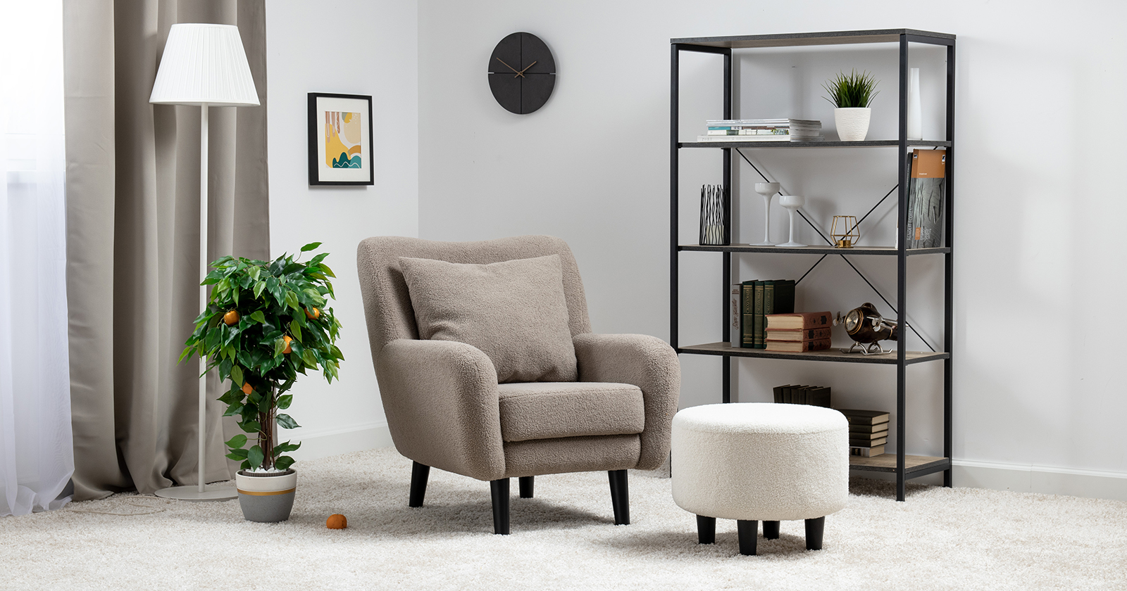 Ткань букле делает кресло особенно уютным и мягким