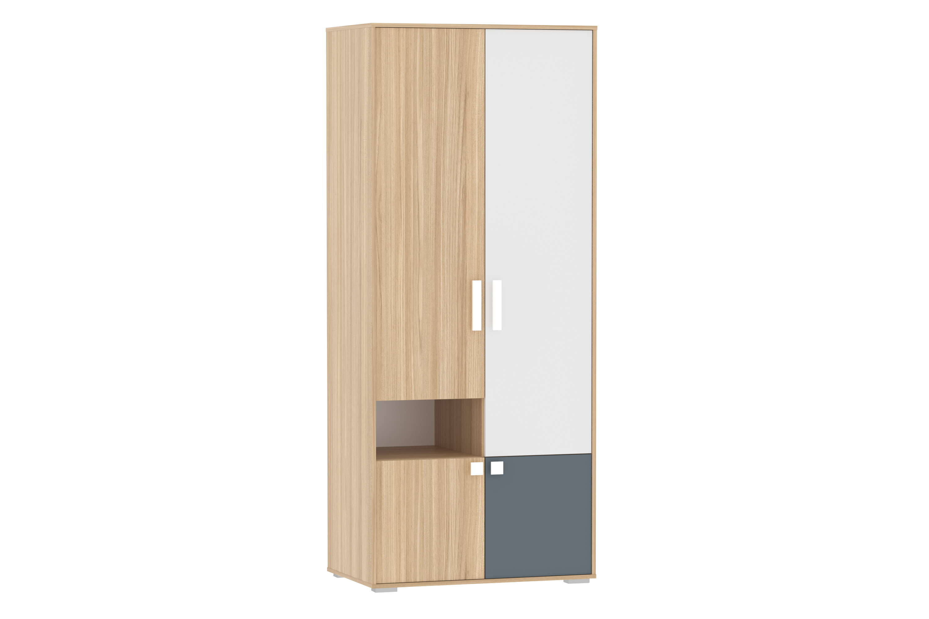 Шкаф для одежды из новой коллекции детской мебели Элиот выполнен в нейтральных оттенках песочного, белого и контрастного маренго – цвета темной морской волны, которые отлично подойдут в комнату как девочки, так и мальчика, сделав ее стильной и современной.