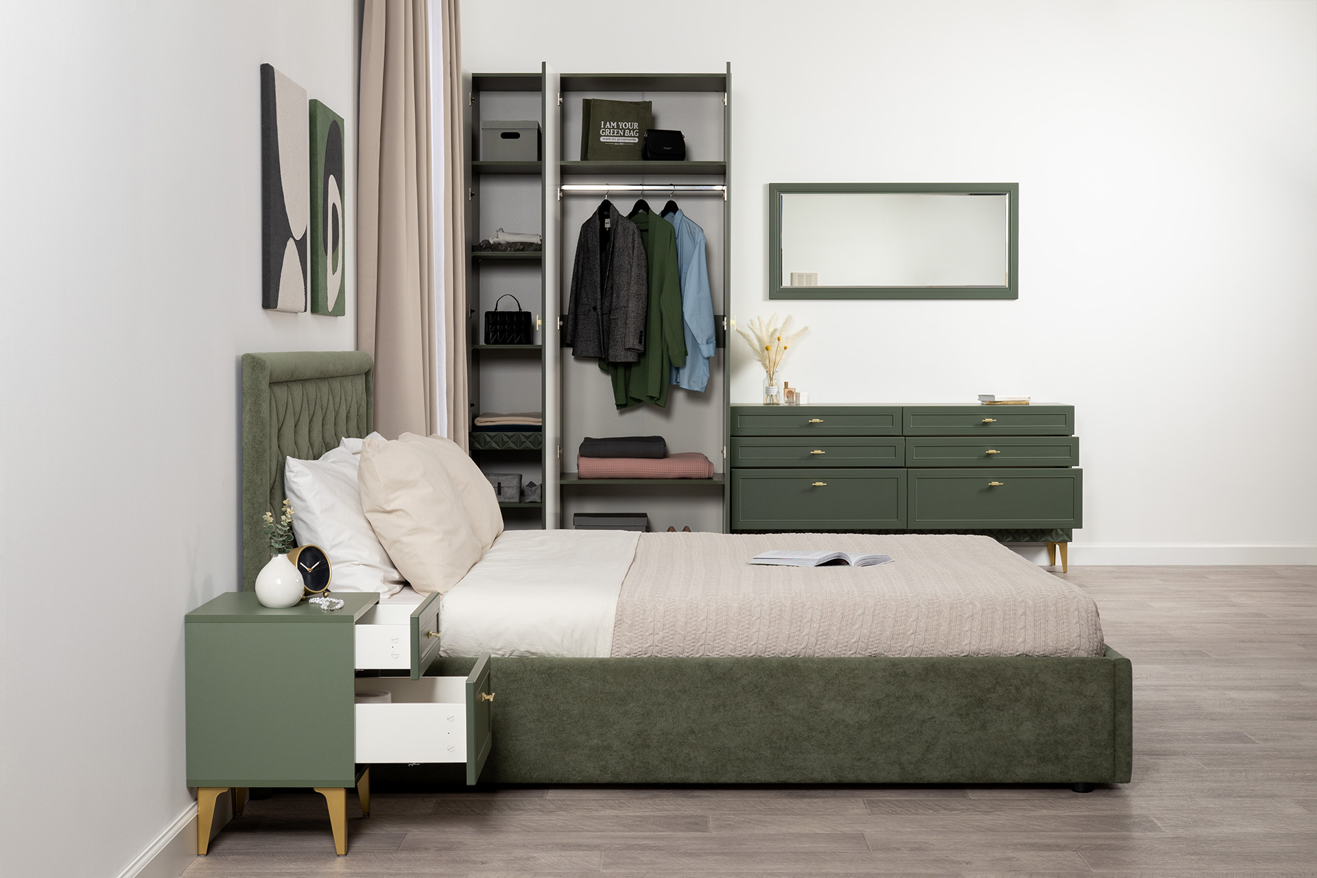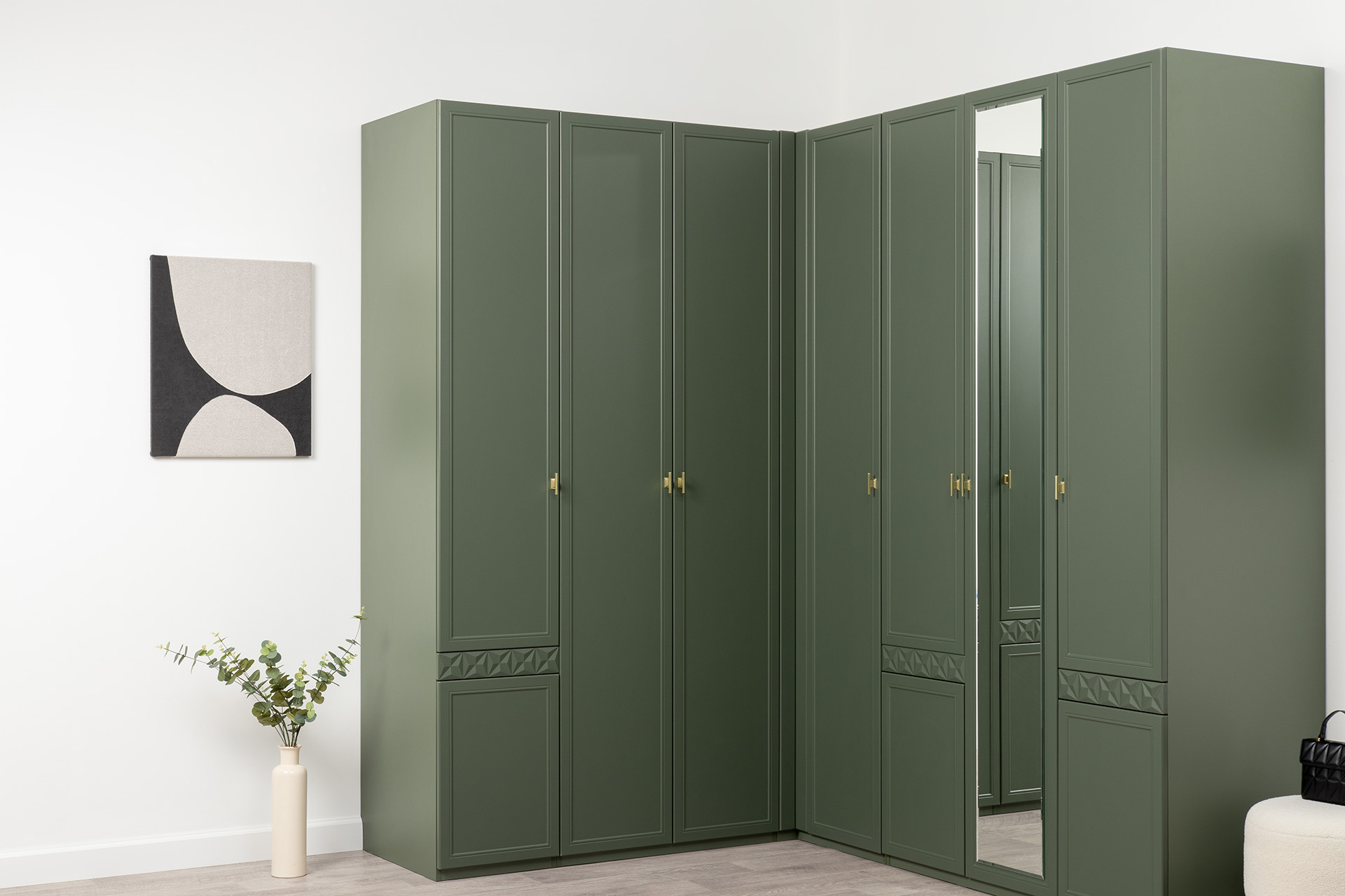 Шкаф двустворчатый Марион 16.340.02 дымчатый зеленый K521, олива шагрень AG 1050 ПВХ