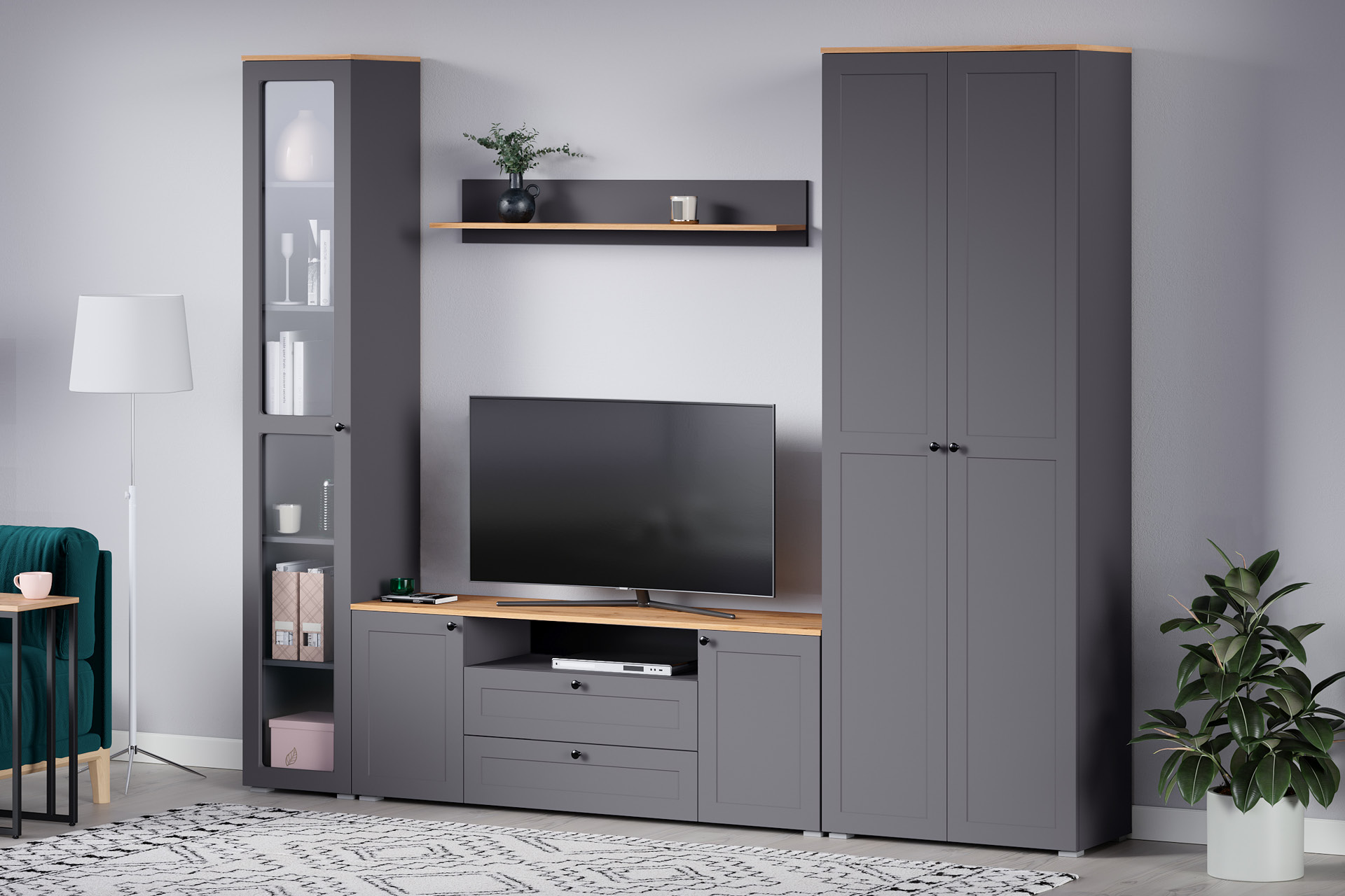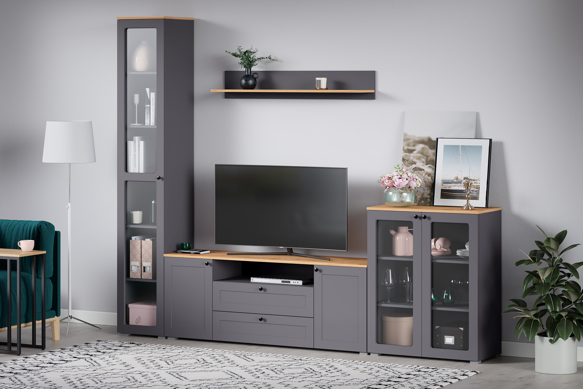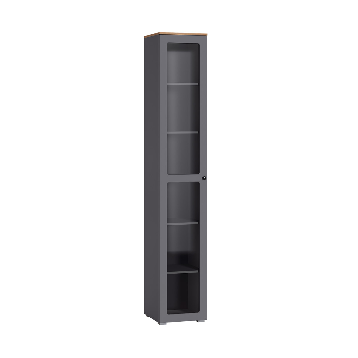 Шкаф-витрина в гостиную Остин 16.394.03 серый графит 0162 РЕ, дуб золотой CRAFT, графит ZB 856-2 ПВХ