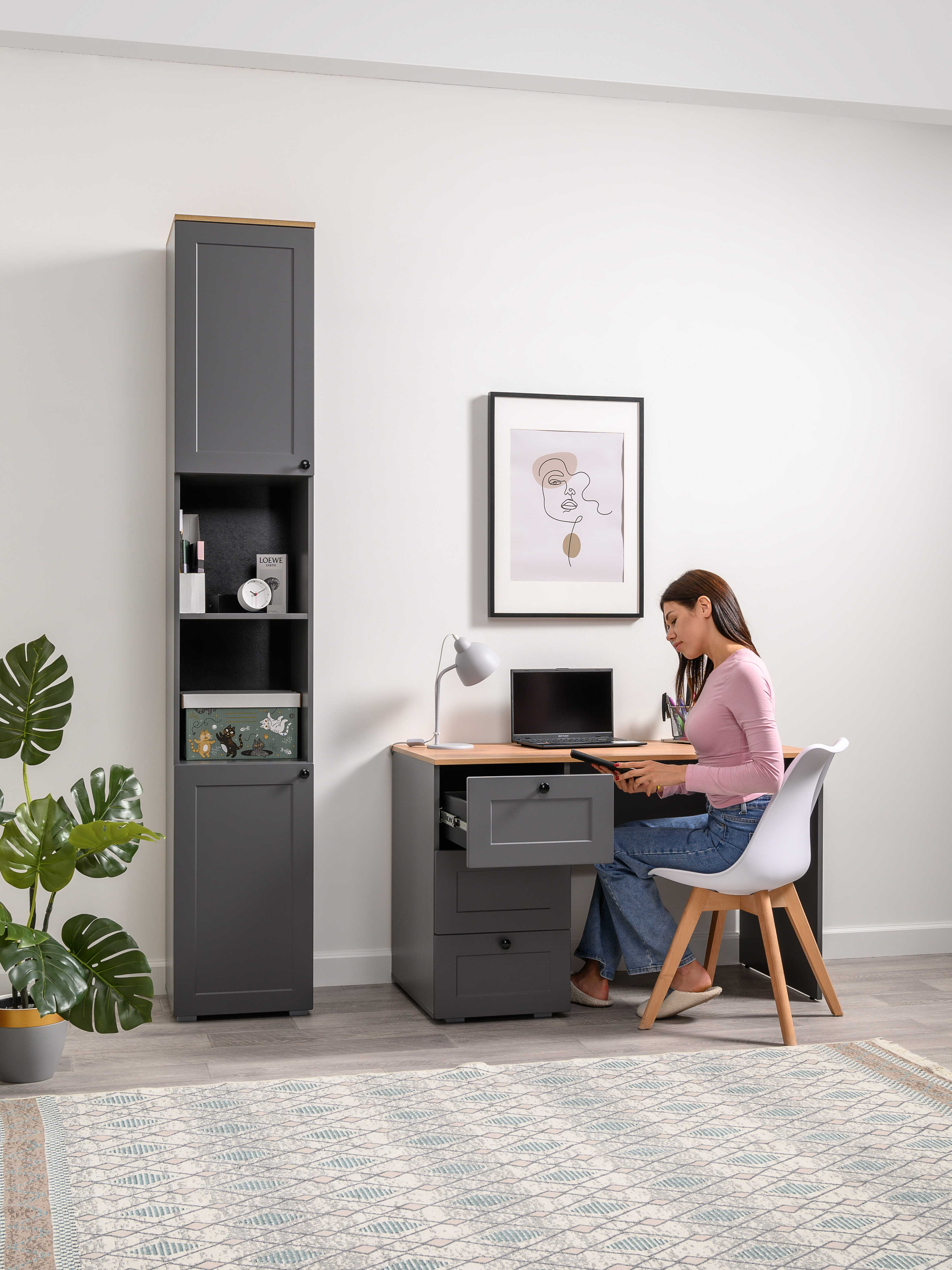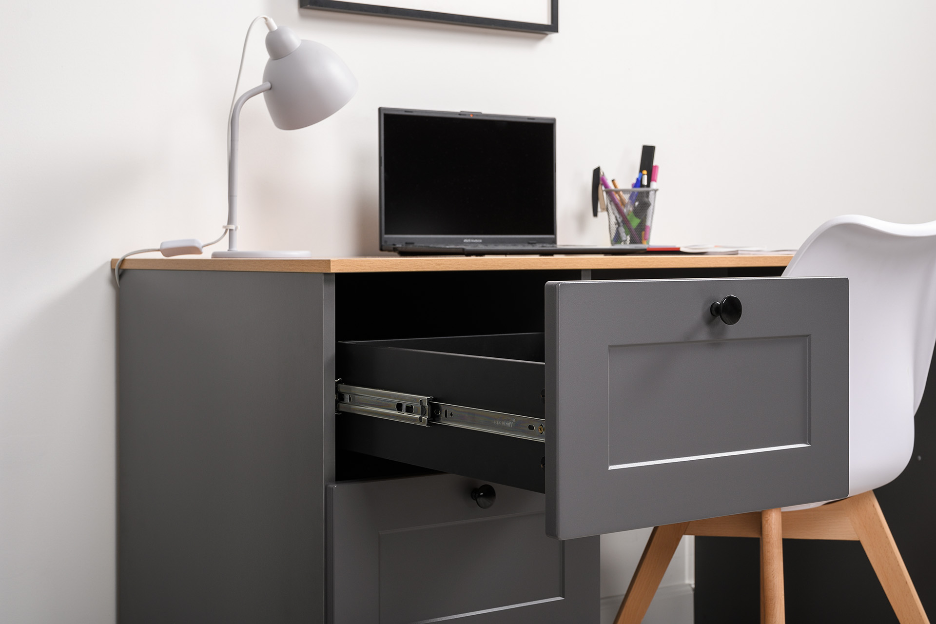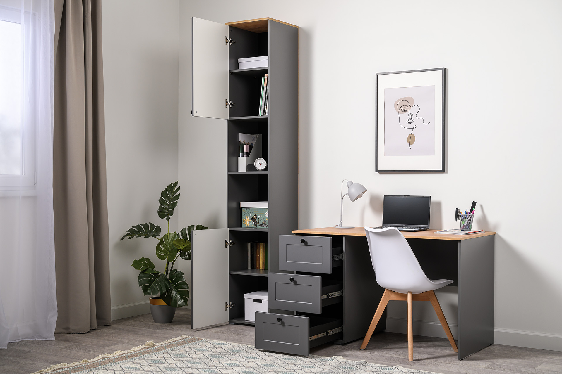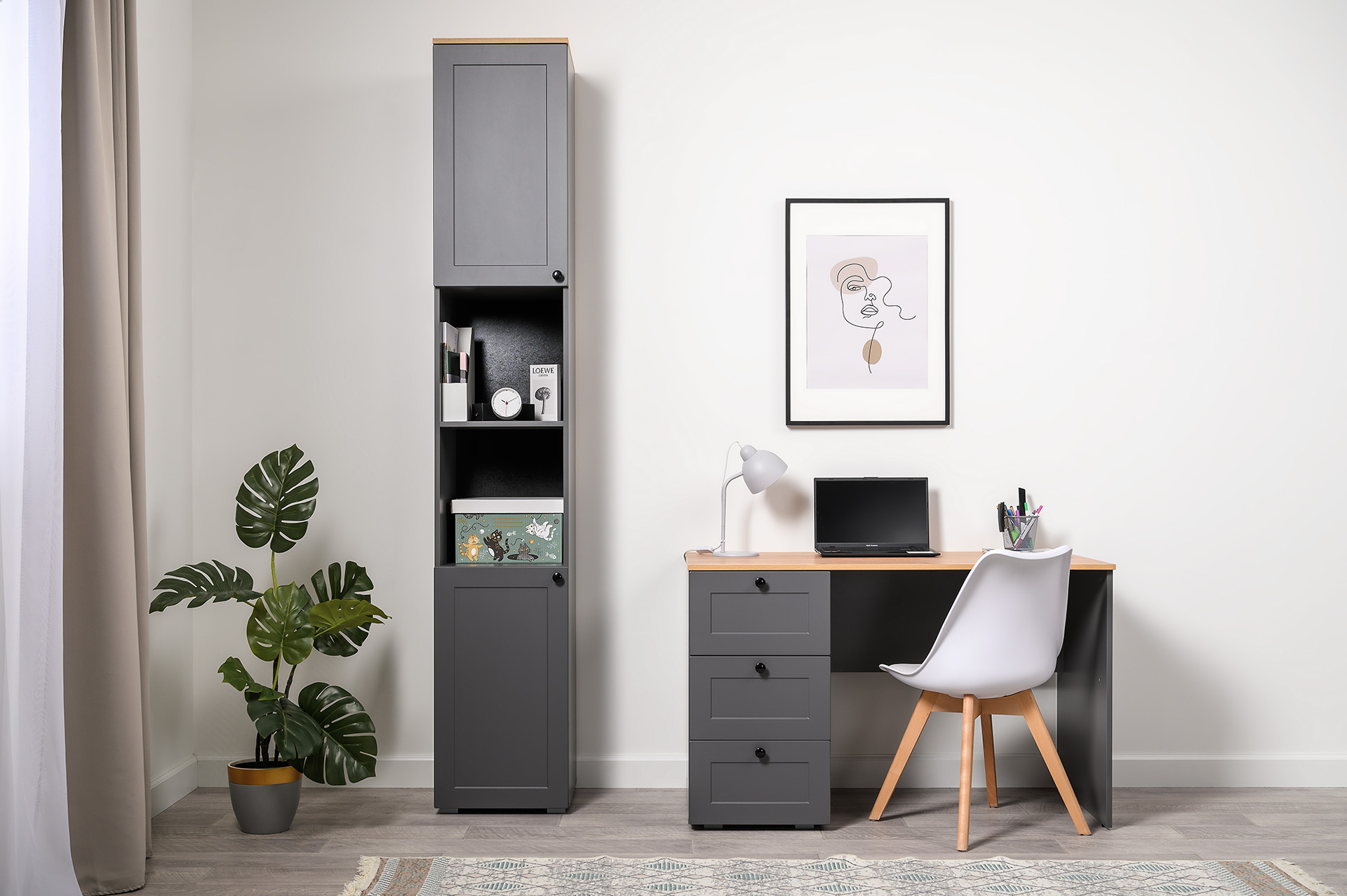 Стол письменный Остин 12.159 серый графит 0162 РЕ, дуб золотой CRAFT, графит ZB 856-2 ПВХ, сборка на любую сторону